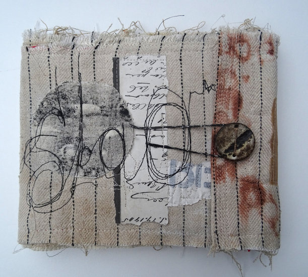 Sixteen pages made in mixed media a.o. machine embroidery, collage, paper, ink and paint.